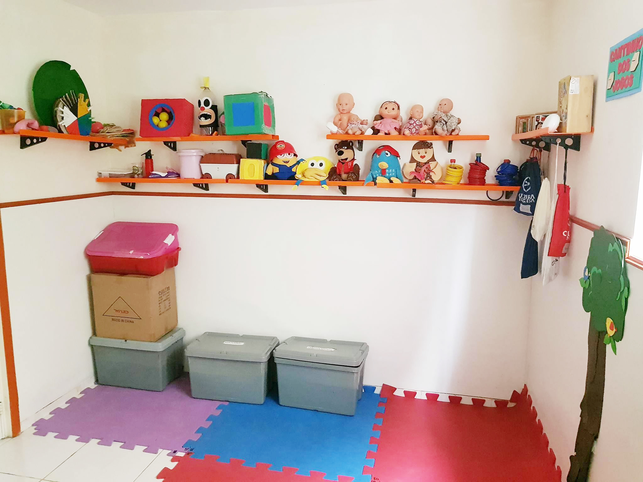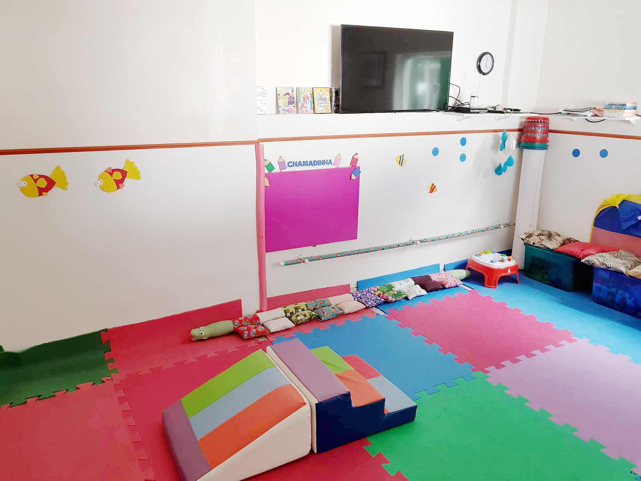 Na sala de atividades pedagógicas, trabalha-se com o conhecimento da ciência da natureza, com o raciocínio lógico, com a linguagem e conta com jogos específicos e livros para este fim.