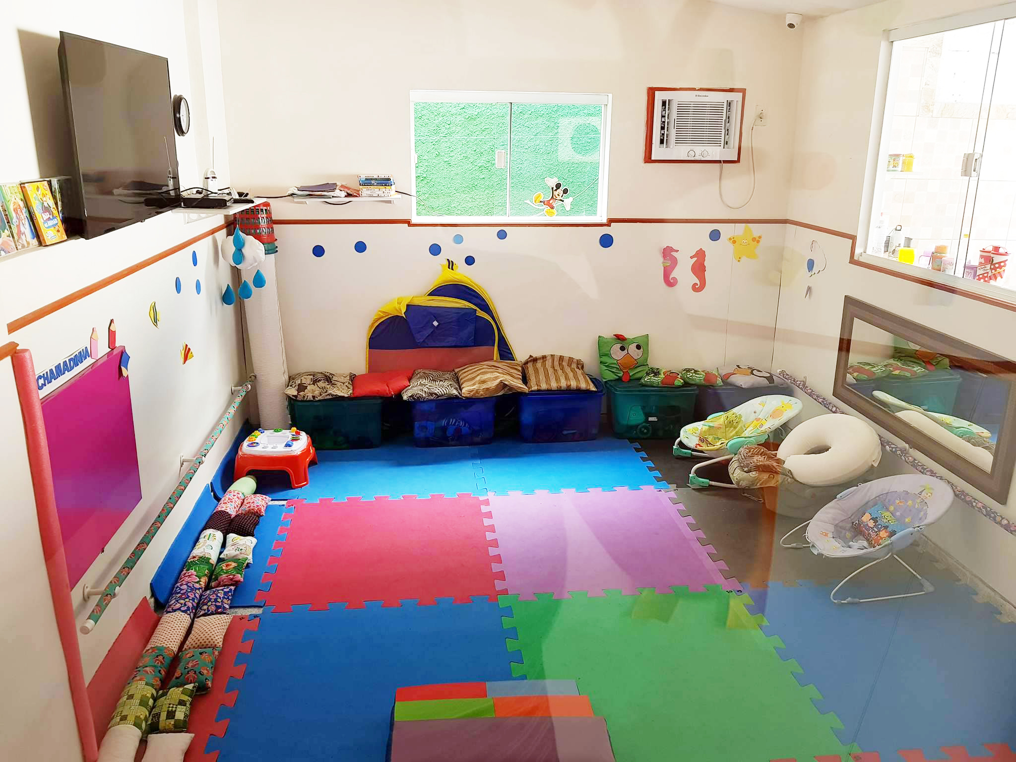 A TAGARELAR CRECHE-ESCOLA trabalha com um sistema de rodízio de salas de aula denominadas salas-temáticas ou salas-ambiente.